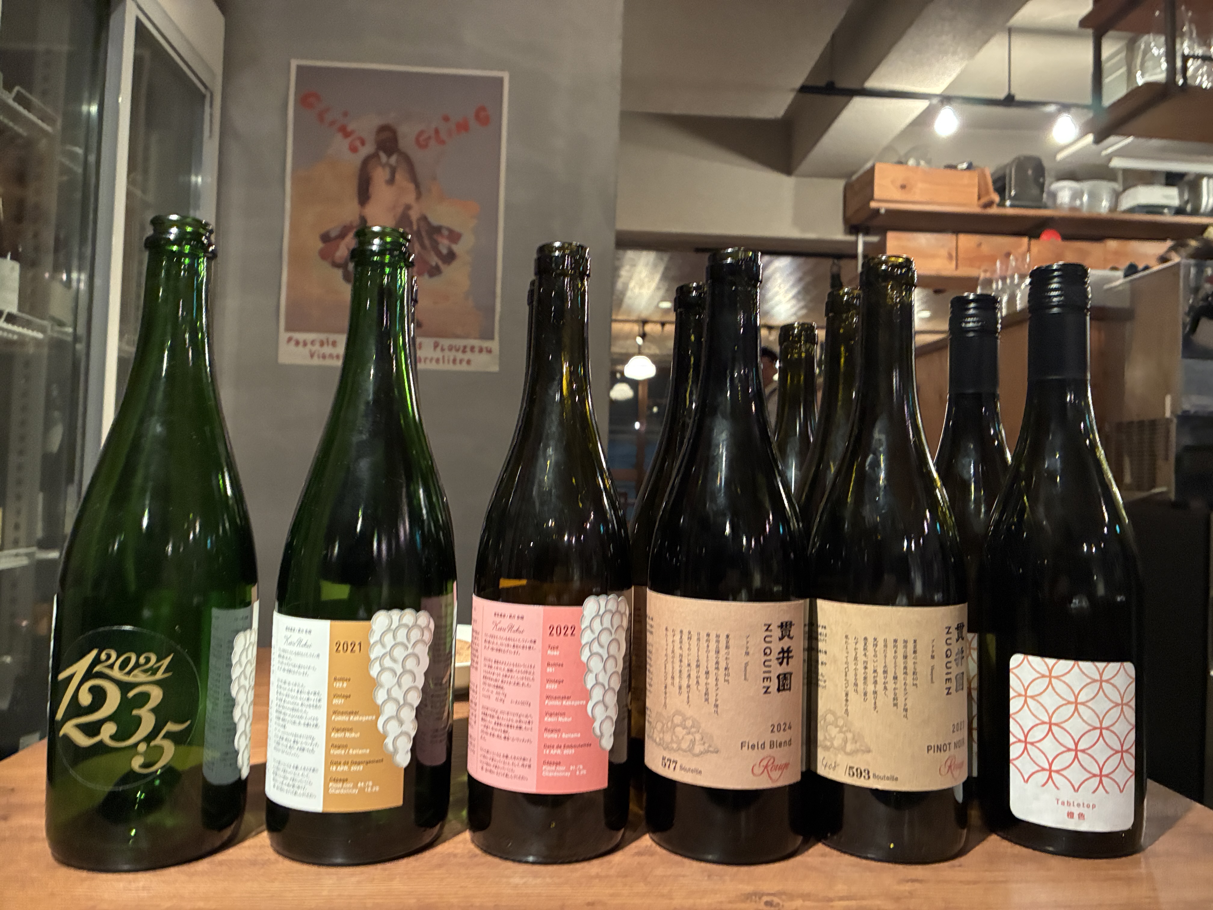 2024年ヴィンテージ赤ワイン お披露目・先行ワイン会を開催しました! ご参加頂いた皆さま、会場となった清澄白河フジマル醸造所の甲山シェフ、サービス、スタッフの皆さま、ありがとうございました。 人参のムース 2021年vt 瓶内二次発酵スパークリングワイン 2021年収穫、ピノ・ノワールとシャルドネの混醸。瓶内二次発酵15ヶ月。さらに時間がたって、とても濃い黄金色に。泡立ちは細かく穏やかになっていました。 残り本数が少ないこともあり、私も久しぶりに飲みました。 千葉県浅野さんのフルーツカブに富山のブリのマリネ カブのパンナコッタとカブの葉ソース パーラー江古田さんのパン3種 2022vtのロゼ カブのパンナコッタに、『まさにカブ!』と皆さんびっくり&美味しいとの声があちこち ピノ・ノワールの割合いが多いので”ロゼ”と呼んでいますが、色合いオレンジ色。 味わいも酸のニュアンスが強いので、”オレンジワイン”と紹介しても良いなと思いました。 原木しいたけのタリアテッレ 清澄白河フジマル醸造所のデラウェア tabletop橙色 原木しいたけ、絶賛いただきました^^ 今の時期の椎茸は、本当に味わいも歯ごたえも香りも抜群で、皆様に喜んで頂け嬉しい。 ウチのワインのラインナップに白ワインがないこともあり、 フジマルさんのデラウェアを合わせました! 鰆のアクアパッツァ 原木しいたけ 牡蠣と深蒸し茶 なんと、ウチの深蒸し茶が隠し味で使われました。タリアテッレに続き、シイタケも! 北海道エレゾの豚ロースかつ ディカとほうじ茶、マスタードソース 鰆のアクアパッツァと豚ロースカツの両方にあわせて、 2023vt 赤ワイン ピノノワール100%と 2024vt 赤ワイン ピノノワールとシャルドネのフィールドブレンド を飲み比べ。 1年のヴィンテージ違いと醸造の違いが味わにどう影響するかなと思い、 同時に提供頂きました。 皆さん、”好みはこっち”とか、”最初はこっちがいいなと思ったけど、飲み進めるともう1つの方が好きかも”等々、さまざま感想があり、こういった飲み比べしてワイワイ話せるのが、ワイン会の楽しいところですね。 リンゴの一口アヴァンデセールを頂いて、 さつまいものティラミス 食後酒には、 フジマル醸造所が愛媛県に所有する焼酎蔵”媛囃子”のブランデー で〆ました! とっても楽しい時間でした。ありがとうございました!!
